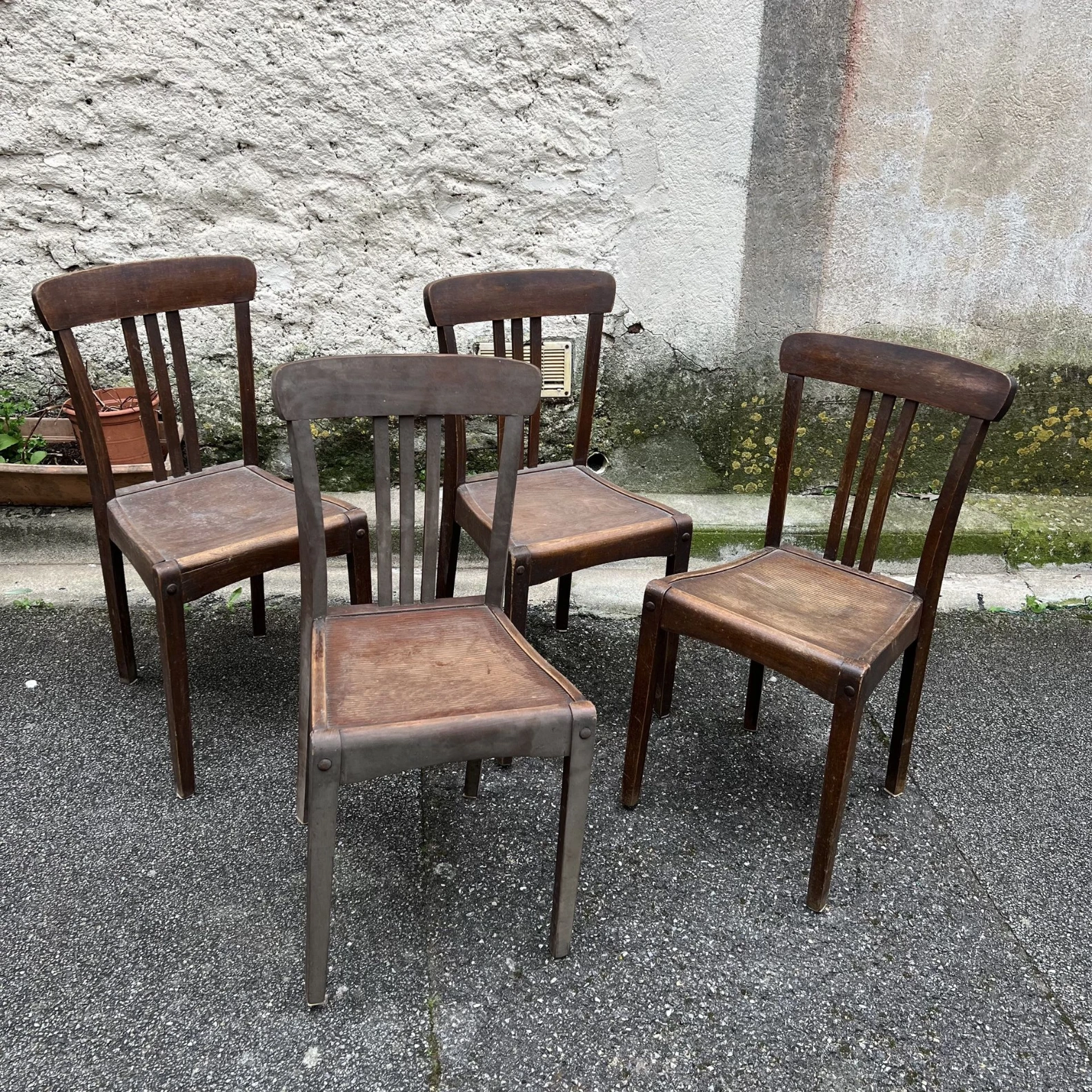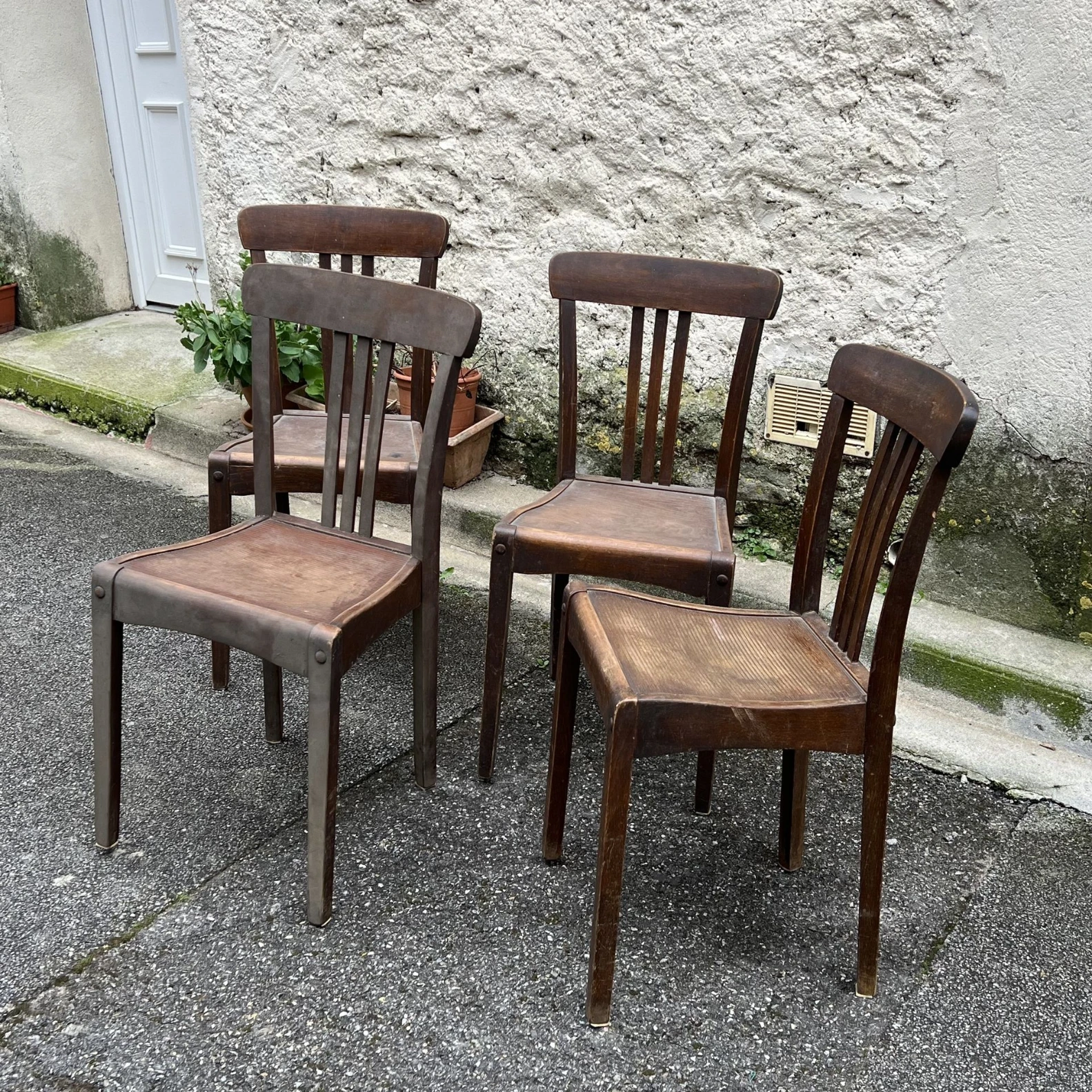 Lot 4 chaises bois vintage style bistrot – patine authentique