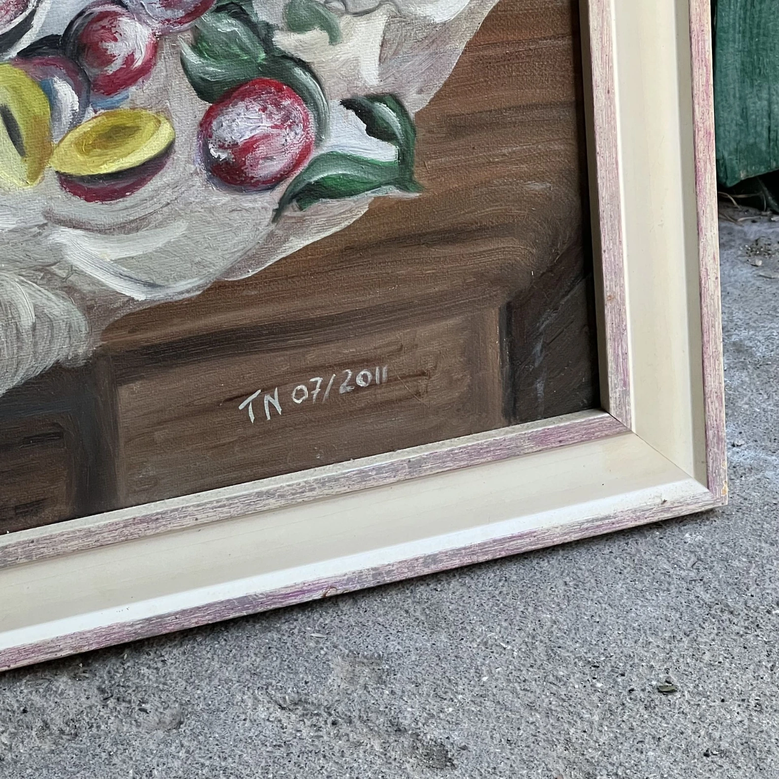 Peinture nature morte signée TN 2011 déco murale vintage