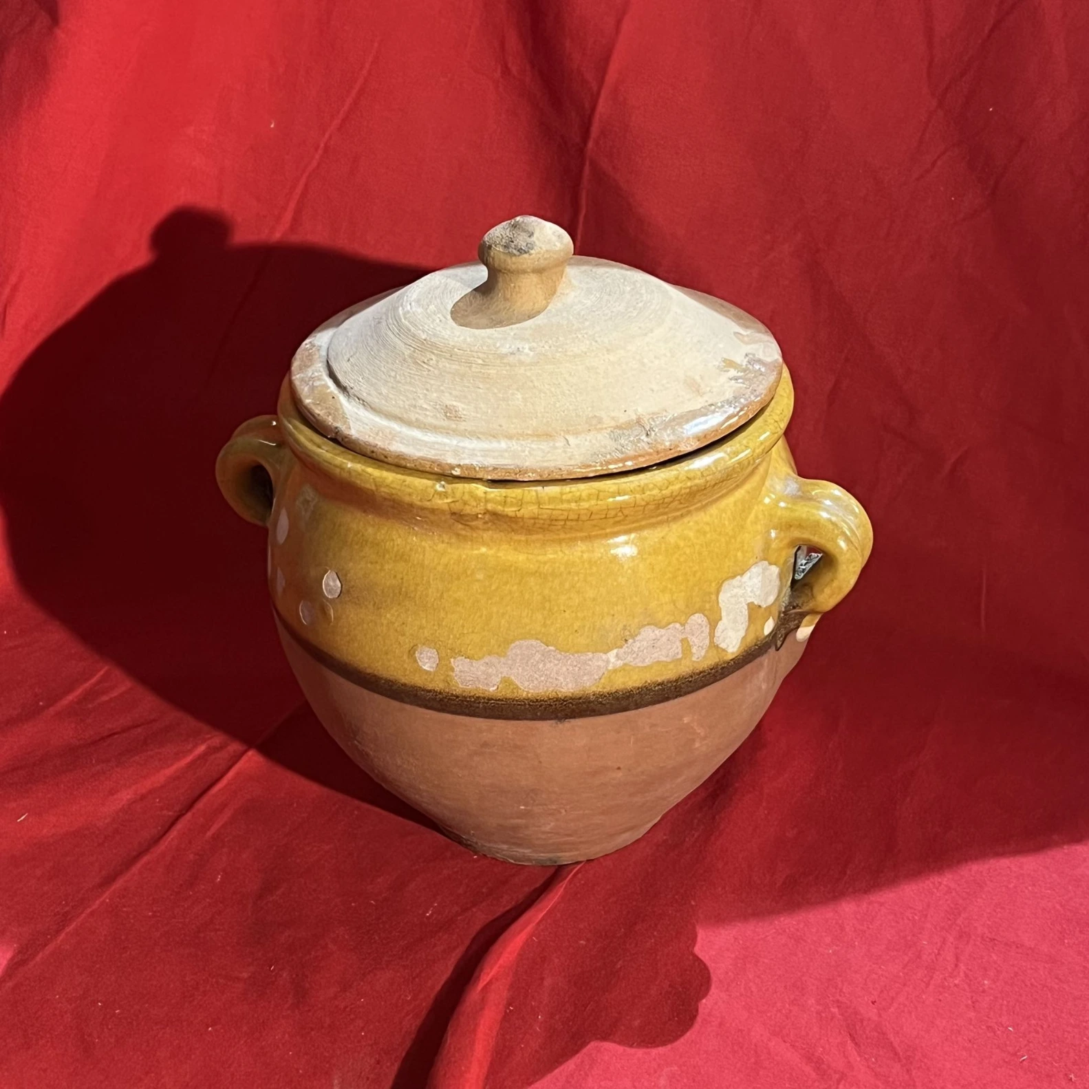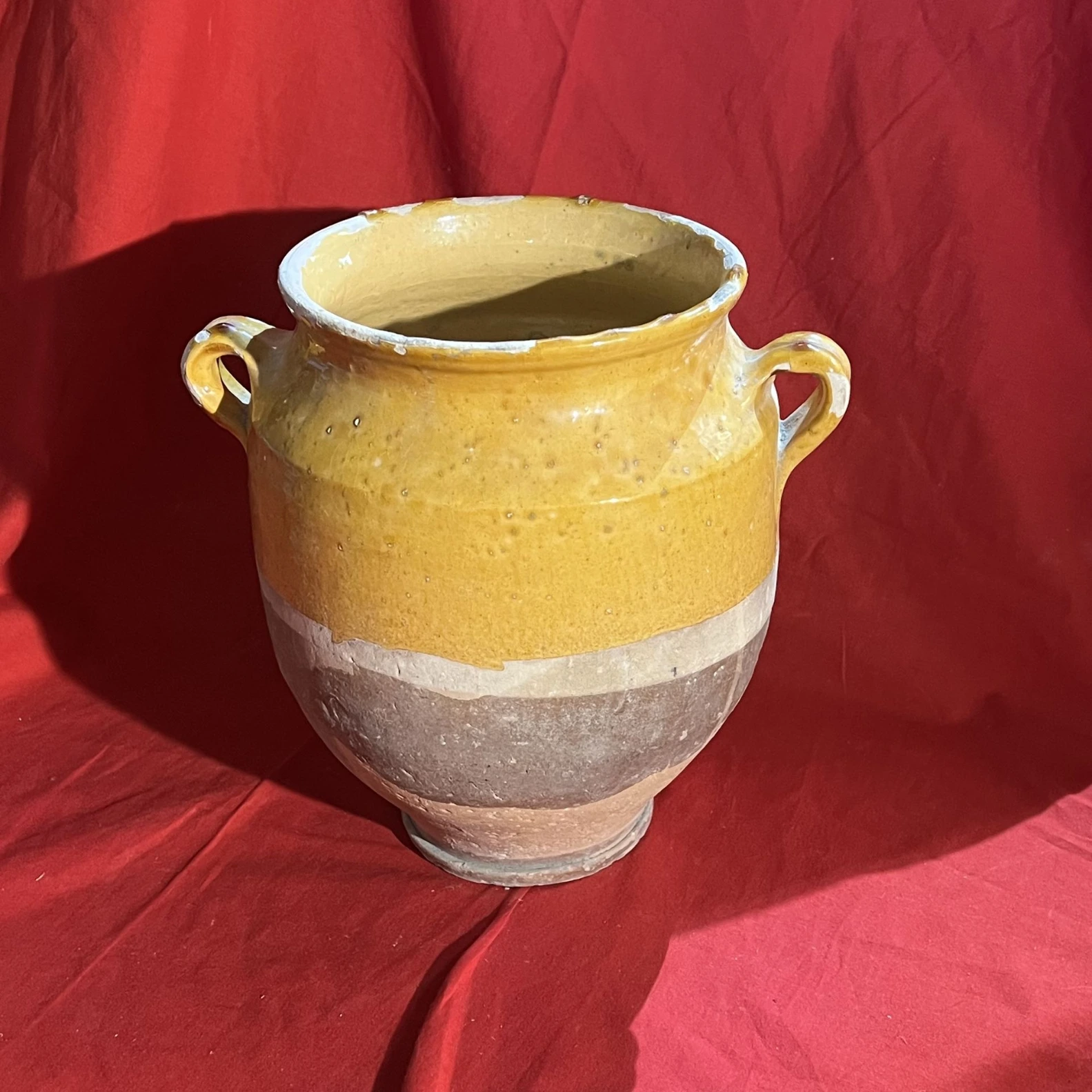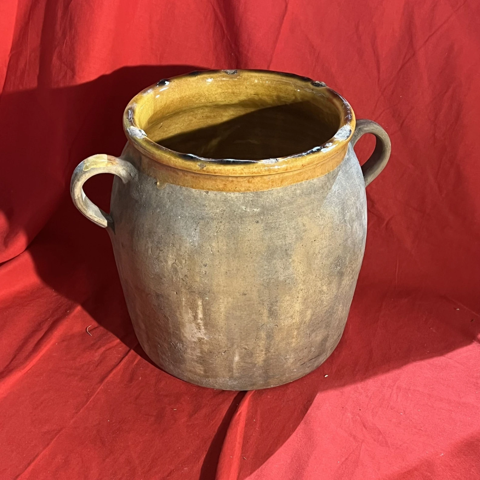 Lot de pots en terre vernissée avec anses, finition jaune/brun, parfait pour décoration rustique ou ambiance campagne.