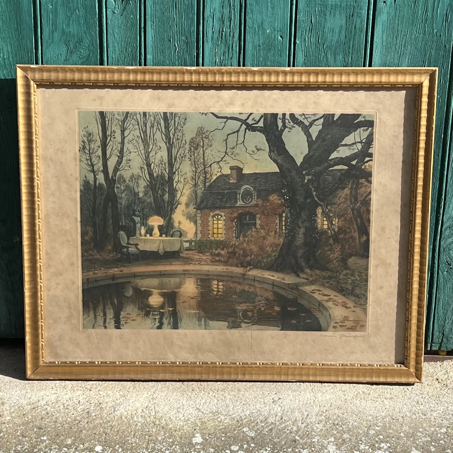 Cadre doré. Ambiance chaleureuse et vintage. Signé (visible)